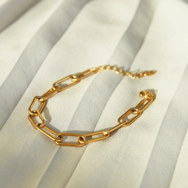 Everyday Gold Bracelet for Charms | Thick Paper Clip Chain | Chunky Link Chain | Large Paperclip Bracelet